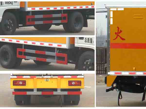 我公司專業生產東風系列,江鈴系列,江淮系列,北汽奧鈴系列,北汽時代系列,北汽歐曼系列,慶鈴系列,解放系列等爆破器材運輸車,廂體為雙層金屬骨架結構,外部為冷扎鋼板,內壁采用鋁合金板蒙面,夾層為隔熱阻燃材料填充。設置對開門,如需安裝抗暴容器則增開側門,側壁設有防雨功能自然通風窗口,以使廂內外空氣流動,廂體內部做防靜電處理,廂體底部與廂內前部鋪有阻燃導靜電膠板,并與底盤等電位連接,通過車輛后端的導靜電裝置與大地相連,可防止靜電火花的產生和車輛靜電及時釋放,提高車輛的安全性。廂體內部前面和側面裝有固定拉環,與捆綁帶使用捆綁貨物以避免移動,保證安全。