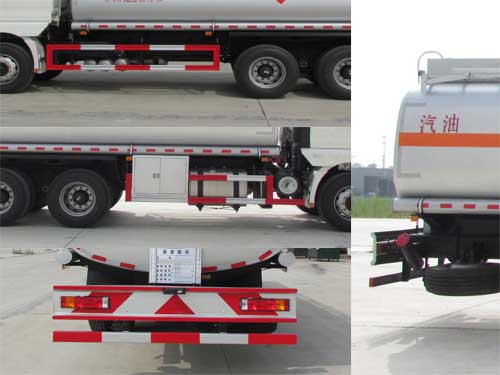 陜汽德龍后雙橋運油車采用陜汽本部暢銷產品:陜汽德龍油車專用底盤(二類國四排放底盤):前盤制動,ABS,行使記錄儀,限速器,排氣管前置。