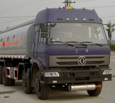 東風前四后八油罐車選裝駕駛室。運送介質品名:汽油;柴油。介質密度:700千克/立方米;850千克/立方米罐體有效容積為16.48立方米, 罐體外形尺寸 (長度×長軸×短軸)(mm):9100×2265×1195. |