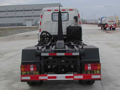 福田時代小卡之星拉臂式垃圾車是車廂可卸式垃圾車的一種,利用翻轉架與活動拉臂把垃圾箱拉到附車架上,用側向導向塊定位及鎖緊鉤鎖緊定位,整車行駛中箱體無歪斜現象,具有結構簡單、操作穩定方便、裝卸效率高、機械化程度高、節省人力的優點。