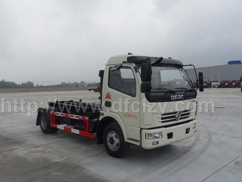 東風凱普特國五勾臂式垃圾車是車廂可卸式垃圾車的一種,利用翻轉架與活動拉臂把垃圾箱拉到附車架上,用側向導向塊定位及鎖緊鉤鎖緊定位,整車行駛中箱體無歪斜現象,具有結構簡單、操作穩定方便、裝卸效率高、機械化程度高、節省人力的優點。