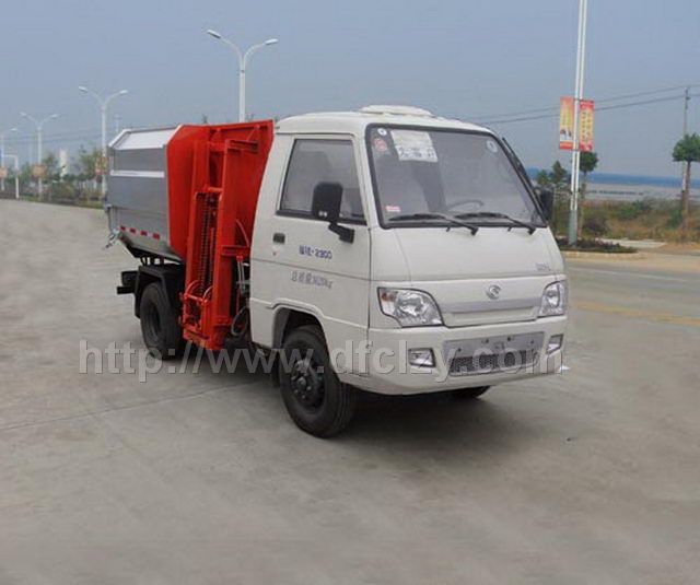 時代小卡之星國四掛桶式垃圾車是自裝卸式垃圾車的一種,利用翻轉架與活動拉臂把垃圾桶拉到車箱上部傾倒入垃圾箱,整車行駛中箱體無歪斜現象,具有結構簡單、操作穩定方便、裝卸效率高、機械化程度高、節省人力的優點,上下一次工作循環時間≤50S。