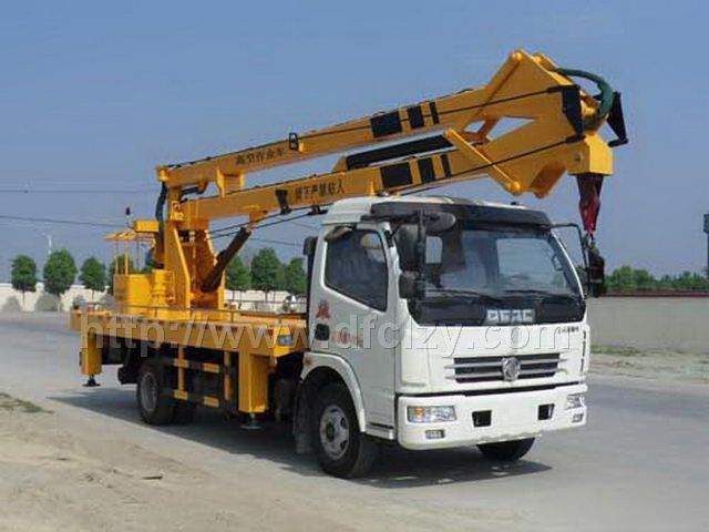 高空作業車是指運送工作人員和使用器材到現場并進行空中作業的專用車輛。東風多利卡曲臂式國五高空作業車采用雙排座或排半東風汽車公司國五二類底盤,朝柴115KW發動機或玉柴130馬力或康明斯156馬力,7.50-16 14PR輪胎,前伸1100mm,后伸150mm,,舉升高度14-16米。帶液壓或手動支腿4個。未經培訓合格并獲得操作、駕駛資格證書的人員嚴禁操作高空作業車。 東風多利卡曲臂式國五高空作業車能懸伸作業、跨越一定的障礙或在一處升降可進行多點作業;平臺載重量大,可供兩人或多人同時作業并可搭載一定的設備;移動平臺移動性好,還可360度旋轉,轉移場地方便;外型美觀,適于室內外作業和存放。適用于車站、碼頭、商場、體育廠館、小區物業、廠礦車間等大范圍高空作業。東風多利卡曲臂式國五高空作業車具體參數及圖片見下表: