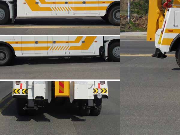 托舉質(zhì)量6160kg。工作裝置可選裝,選裝13T20D型外形長8640mm,后懸1540mm。可選裝前車燈架側(cè)防護(hù)與車架連為一體,冷彎型鋼/Q235B,焊接;后防護(hù)由專用裝置替代,冷彎型鋼/Q235B,焊接,其下緣離地高500mm。超限。ABS系統(tǒng)型號(hào)為4460046300,生產(chǎn)企業(yè)為威伯科汽車控制系統(tǒng)(中國)有限公司。 |