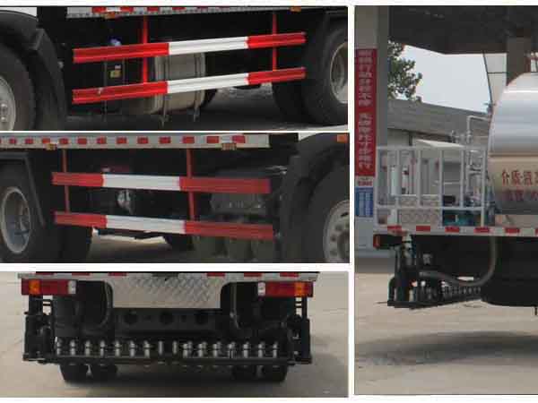 罐體有效容積:6.65立方米,運(yùn)輸介質(zhì)為液態(tài)瀝青,密度:900千克/立方米。橢圓罐體外形尺寸(長/長軸/短軸)(mm):4350/2410/1710(罐體內(nèi)部尺寸為3980/1950/1250), 罐體保溫層厚度為230mm。防護(hù)材料:Q235A碳鋼,連接方式:左右側(cè)面防護(hù)與副梁采用焊接連接;后部專用裝置與后防護(hù)相干涉,故后防護(hù)豁免.ABS系統(tǒng)型號(hào)為4460046300,生產(chǎn)企業(yè)為威伯科汽車控制系統(tǒng)(中國)有限公司;隨底盤選裝駕駛室及其附件 |