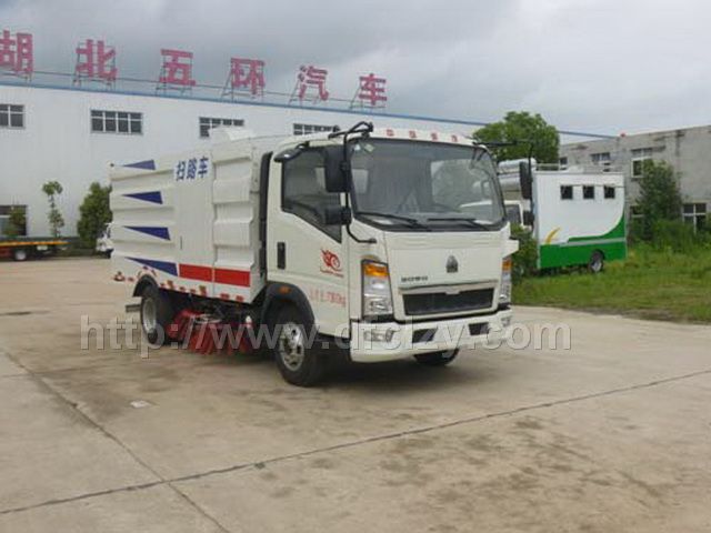 重汽豪沃HCQ5073TSLZZ5國五掃路車采用重汽HOWO豪沃型國五二類底盤改裝,加裝副發動機、風機、清水箱、垃圾箱、左右立掃、后置吸盤,掃盤降塵系統,液壓系統、專用裝置電控系統和副車架等改裝而成: