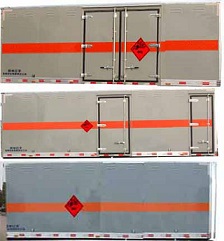 廂體頂部密封,不可開啟.廂體可選裝不同形式的側開門或無側門.隨底盤選裝駕駛室。運送爆炸品的品名:黑火藥,壓縮黑火藥,電(非電)引爆雷管,爆破炸藥,導爆索,點燃導火索.運送爆炸品的項號:1.1D,1.1D,1.1B,1.1D,1.4G.發動機ISD210 50,ISD190 50,ISD180 50分別對應的油耗關系為:27.3,27.4,27.6.當整車長度為8580mm時,軸距4700mm、5000mm與后懸2450mm,2150mm一一對應.當整車長度為8280mm時,軸距4500mm、4200mm與后懸2350mm,2650mm一一對應.防護材料:Q235A碳鋼,連接方式:左右側面防護均采用螺栓連接,后下部防護與車架采用焊接連接,后部防護斷面尺寸(mm):120×50,后部防護離地高度(mm):450。安裝限速裝置,限速80km/h。該車安裝帶有衛星定位功能的行駛記錄儀。僅采用前盤制動器和安裝ABS以及前置消聲器的底盤。僅采用子午線輪胎。ABS型號:3631010-C2000,4460046440;生產廠家:東科克諾爾商用車制動系統(十堰)有限公司,威伯科汽車控制系統(中國)有限公司. |