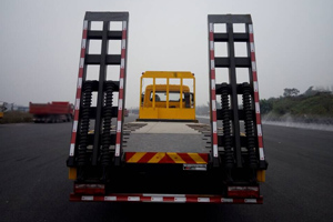 楚風前四后八平板運輸車用于裝載運輸工合機械、挖機、鏟車、收割等工合機械運輸,車后部帶后爬梯,帶支腿(液壓或手動),底板為8mm花紋鋼板,橫梁120x120mm套100x100方鋼承載筋,貨臺承載面尺寸長6880mm-8600mm, 寬2500mm,承載面可選裝手動或液壓水平支出.平板離地高度:1050mm。爬梯長度1000-1500mm,傾角30-45度.