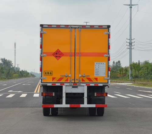 重汽斯達-斯太爾牌防爆車\民爆車\炸藥運輸車廂體外飾冷軋鋼板,內飾防靜電鋁板,底板鋪防靜電膠板,側壁設防雨通風窗口,帶捆綁固定拉環,煙霧感應器,防盜報警開關,靜電帶,滅火器2只,車廂黃色,有危險標志,貼有反光標識。