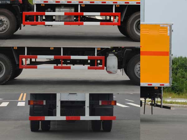 1、廂體頂部封閉,不可開啟;2、廂體顏色可變化,文字噴涂位置可變化;3、前置排氣系統,ABS系統型號為4460046300,生產企業為威伯科汽車控制系統(中國)有限公司;4、運輸品名:黑火藥,壓縮黑火藥,電引爆雷管,爆破炸藥,點燃導火索,類項號:1.1D,1.1D,1.1B,1.1D,1.1G;5、防護裝置材料:側面防護及后下部防護裝置材料材質:冷彎型鋼/Q235,連接方式:焊接加螺栓連接,后下部防護裝置截面尺寸100mm×50mm,離地高度540mm;6、MC05.18-50發動機油耗值為26.3L/100km,MC05.21-50發動機油耗值為26.4L/100km;7、裝配限速裝置,限速80km/h,安裝具有衛星定位功能的行駛記錄儀;8、采用前盤式制動器,子午線輪胎。 |