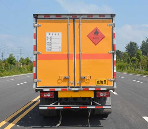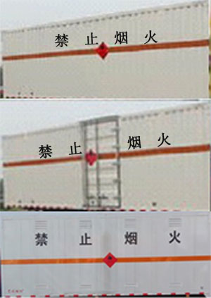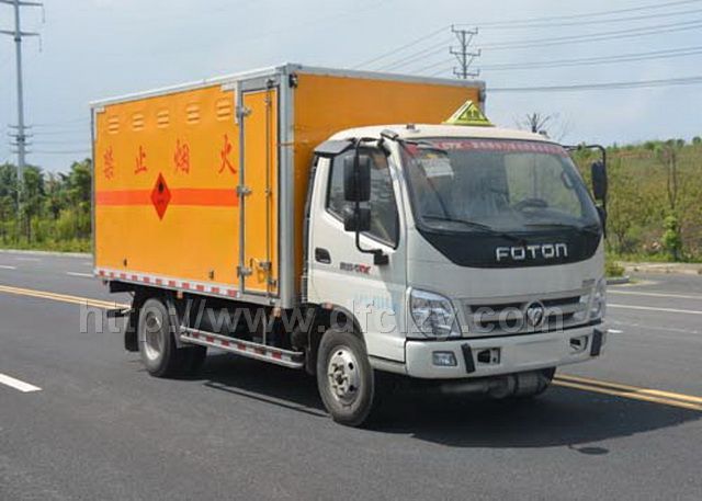 福田奧鈴易燃氣體廂式運輸車廂體外飾冷軋鋼板,內飾防靜電鋁板,底板鋪防靜電膠板,側壁設防雨通風窗口,帶捆綁固定拉環,煙霧感應器,防盜報警開關,靜電帶,滅火器2只,車廂黃色,有危險標志,貼有反光標識。