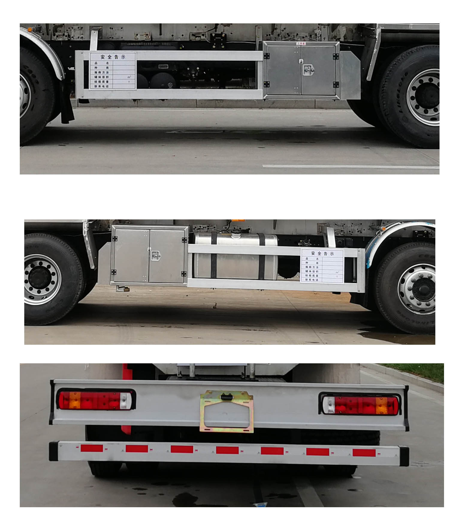 1,運輸介質:柴油,煤油,汽油;密度830,800,700千克/立方米,罐體有效容積26立方米,罐體外形尺寸(長×寬×高)(mm):9200×2410×1600。罐體上部選裝無上走道,工具箱可裝在車架左側或右側且安裝位置可前后變化。2,側/后防護材料為冷彎型鋼/Q235,側防護螺栓連接,后防護焊接,截面尺寸120×50mm,下邊緣離地高500mm,選裝側/后防護材料為鋁合金。3,該車適用于危險品運輸,運送危險貨物車輛類型為:FL型,類項號:3,裝配限速裝置,限速79km/h。4,隨底盤選裝駕駛室, 僅選用消聲器前置,限速裝置,前輪盤式制動及子午線輪胎的底盤;安裝帶衛星定位功能的行駛記錄儀;第三軸為鋼板彈簧和空氣懸架復合式隨動橋,不可提升。ABS型號/廠家: ABS/ASR-24V-4S/4M/東風電子科技股份有限公司。發動機/油耗值對應關系為: ISD245 50,ISD270 50/40.8,40.9。 |