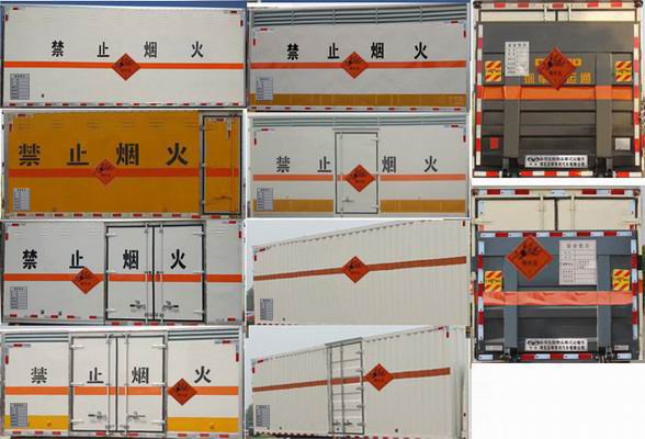 車廂頂部封閉,不可開啟;安裝限速裝置,限速80km/h,安全裝置為導靜電帶,用于防止靜電,該車安裝帶有衛(wèi)星定位功能的行駛記錄儀,僅采用前盤制動器和安裝ABS的底盤,排氣管前置,僅采用子午線輪胎;該車為危險貨物運輸車.用于運輸具有獨立容器(瓶)包裝的:黑火藥,壓縮黑火藥,電引爆雷管,爆破炸藥,點燃導火索;類項號:1.1D,1.1D,1.1B,1.1D,1.4G;車輛類型為EX/Ⅱ型;側(cè)防護和后防護裝置材料材質(zhì)為Q235碳鋼,側(cè)防護與箱體底部焊接連接,后防護裝置與車架采用焊接連接,后防護截面尺寸(mm):100×50,離地高度為500mm;,選裝側(cè)門型式及位置,選裝不開側(cè)門,廂體側(cè)面板選裝開百葉窗,選裝瓦楞板結(jié)構(gòu),選裝液壓升降尾板,選裝液壓升降尾板時收起狀態(tài)的水平長度為300mm;選裝不開側(cè)門時寬度2200mm;發(fā)動機型號與油耗值一一對應:4B2-95C50/10.83(L/100km),WP2.1Q95E50/12.39(L/100km),4B2-110C50/12.97(L/100km),WP2.3Q110E50/12.01(L/100km),CA4DC3-12E5-30/12.55(L/100km),ABS生產(chǎn)廠家/型號:上海萬捷汽車控制系統(tǒng)有限公司/VIE ABS-II. |