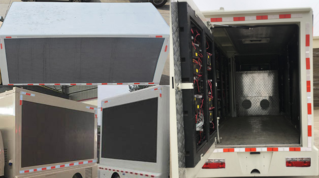 東風途逸國六LED宣傳車|廣告車|科普宣傳車價格標準配置包括:柳州五菱機113馬力發動機,五檔變速箱,2600軸距,前橋1.5噸后橋2.5噸,175R14真空輪胎【后雙輪】(東風途逸駕駛室)。單側或雙側防水p3,p4,P5,P6彩屏,單側防水全彩顯示屏,智能字幕2-7副燈畫切換廣告燈箱,5cm合金鋼架箱體,木地板,地板膠,內外電配電箱,循環通風降溫系統,靜音柴油發電機組,控制系統電腦一臺,高級音響一對,功放一臺,控制臺一個,尾部箱體標配P8全彩屏。隨屏幕尺寸配置底盤。