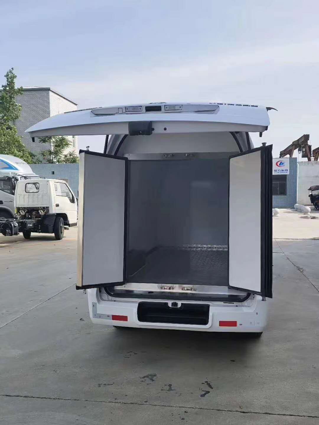 福田風景G7國六面包冷藏車/食品運輸車標準配置:國內知名廠商生產的玻璃鋼各板塊間用高強度結構膠粘接,配以鋁合金型材鉚接成整體,中間聚氨脂泡沫,保溫箱體內頂部安裝頂燈,安裝排水孔。廂頂封閉,后開門,-5度或-15度制冷機組,制冷效果顯著。不銹鋼門鉸鏈及栓桿。