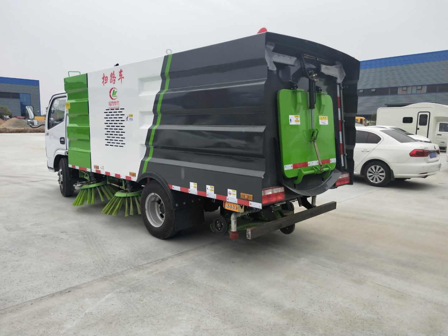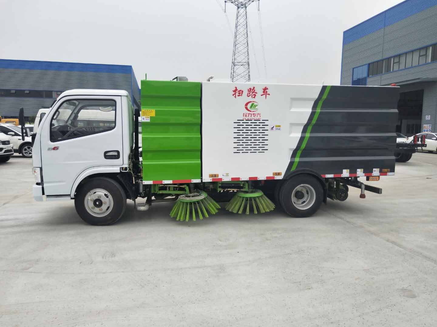 東風(fēng)多利卡國六掃路車采用東風(fēng)多利卡型國六二類底盤改裝,加裝副發(fā)動機、風(fēng)機、清水箱、垃圾箱、左右立掃、后置吸盤,掃盤降塵系統(tǒng),液壓系統(tǒng)、專用裝置電控系統(tǒng)和副車架等改裝而成: