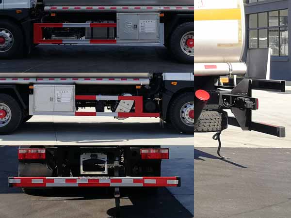 1、該車適用于危險品運輸,運送危險貨物車輛類型為:FL型,類項號:3。罐體有效容積:14.5立方米,運輸介質:汽油,密度:700千克/立方米,罐體外形尺寸(長×寬×高)(mm):5700×2150×1480。2、側、后防護材料為Q235,螺栓連接。后防護截面尺寸120×60mm,下邊緣離地高500mm。罐體上部選裝上走道;選裝后部尾燈架樣式;選裝弧形擋泥板。3、僅采用軸距(mm):4700。隨底盤選裝同系列的高頂駕駛室,選裝氣喇叭,遮陽罩,綠色濾光帶,踏步。僅選用排氣管前置、限速裝置(限速80km/h)、前輪盤式制動及子午線輪胎的底盤;安裝帶有衛星定位功能的行駛記錄儀;ABS系統生產廠家,型號:焦作博瑞克控制技術有限公司,J ABS。采用的發動機與油耗值(L/100Km)對應關系為: B6.2NS6B230/26.7,D4.5NS6B220/26.6,YCS04200-68/26.4,CY4SK761/26.8。 該車后軸為采用空氣懸架。轉向輪安裝輪胎爆胎應急防護裝置。 |