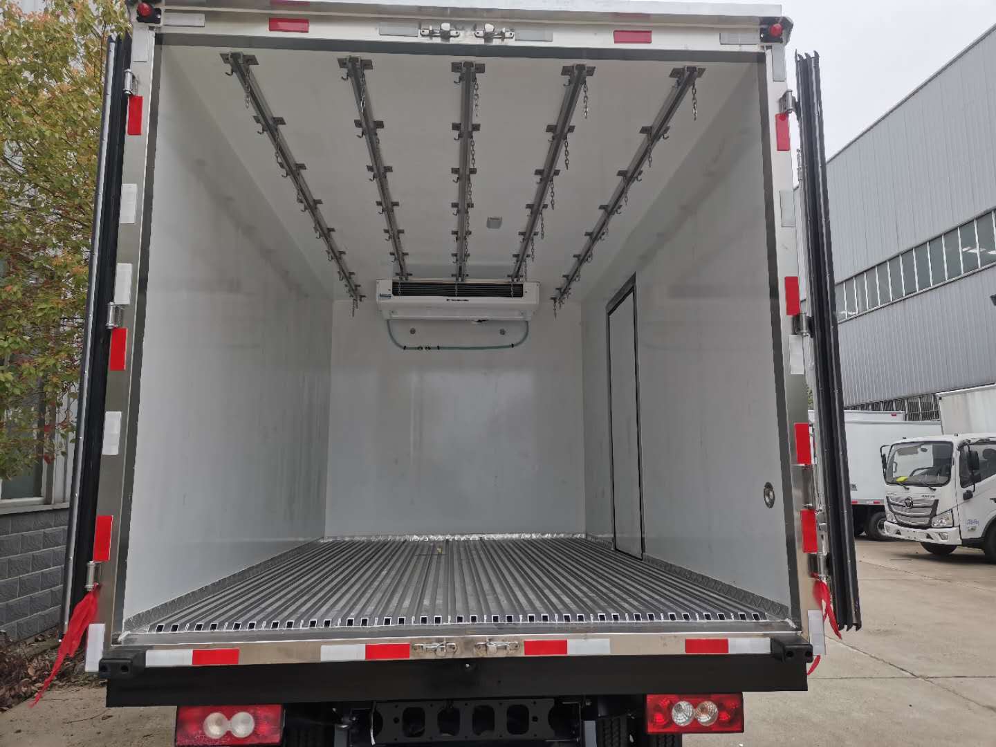 福田歐曼前四后八9米6國六冷藏車選裝配置:箱體內外材料:玻璃鋼,鋁合金,不銹鋼;用戶;溫度記錄儀:隨車打印,高低溫報警,GPS定位;選裝側開門:單側門;制冷機組根據用戶要求選裝15度至-5度國產機組或進口機組(開利或冷王),選裝通風槽,通水槽,導軌肉鉤等。