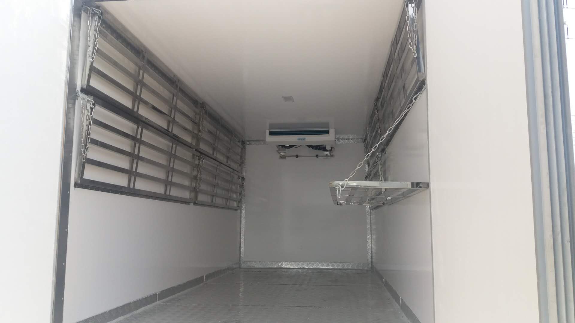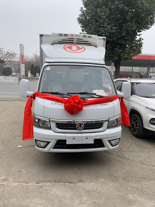 東風途逸天然氣國六冷藏車采用北京福田公司冷藏車專用底盤,1650單排駕駛室、東安106馬力CNG國六發動機、5檔變速箱,軸距2800MM或3000mm、440康邁橋、185R15后雙輪真空胎、自動空調、ABS、行車記錄儀、電動門窗、遙控鑰匙、剎車自調臂,副油箱、前盤制動,中控鎖,LED日間行車燈,定速巡航,藍牙電話。160升-CNG氣瓶(80x2個)可行使300公里。整車不超重。國內知名廠商生產的玻璃鋼,各板塊間用高強度結構膠粘接,配以鋁合金型材鉚接成整體,中間8CM聚氨脂泡沫保溫,廂頂封閉,制冷效果更顯著。不銹鋼門鉸鏈及栓桿。車廂內部尺寸:3400,3490,3700,3800×1737,1830,1860×1380,1750,1850(mm). 車廂地板標配防滑花紋鋁板。