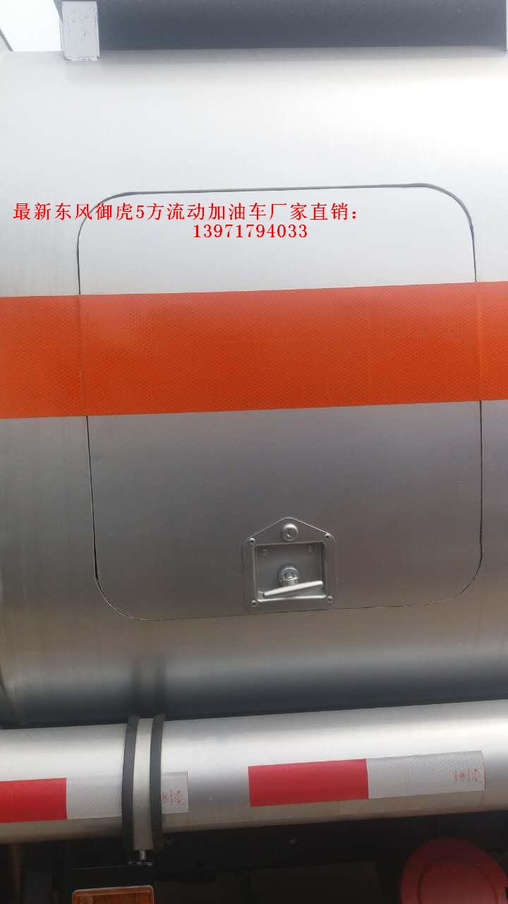 東風(fēng)御虎國五5方流動加油車客戶選裝配置:優(yōu)質(zhì)鋁合金球閥(閥門) ;可分倉(附加一套歐標(biāo)罐口及海底閥) ;泵進(jìn)/泵出流量表(合肥流量表/重慶流量表),罐體內(nèi)部襯塑或罐體內(nèi)部防腐油漆,升降走道板(保護(hù)罐口).選裝加油機(jī)倉內(nèi)或外裝大梁。