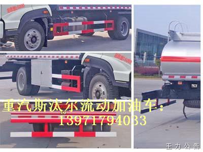 最新重汽斯汰爾12方國五流動運油車客戶選裝配置:優質鋁合金球閥(閥門) ;可分倉(附加一套歐標罐口及海底閥) ;泵進/泵出流量表(合肥流量表/重慶流量表),罐體內部襯塑或罐體內部防腐油漆,選裝加油機倉內或外裝大梁。