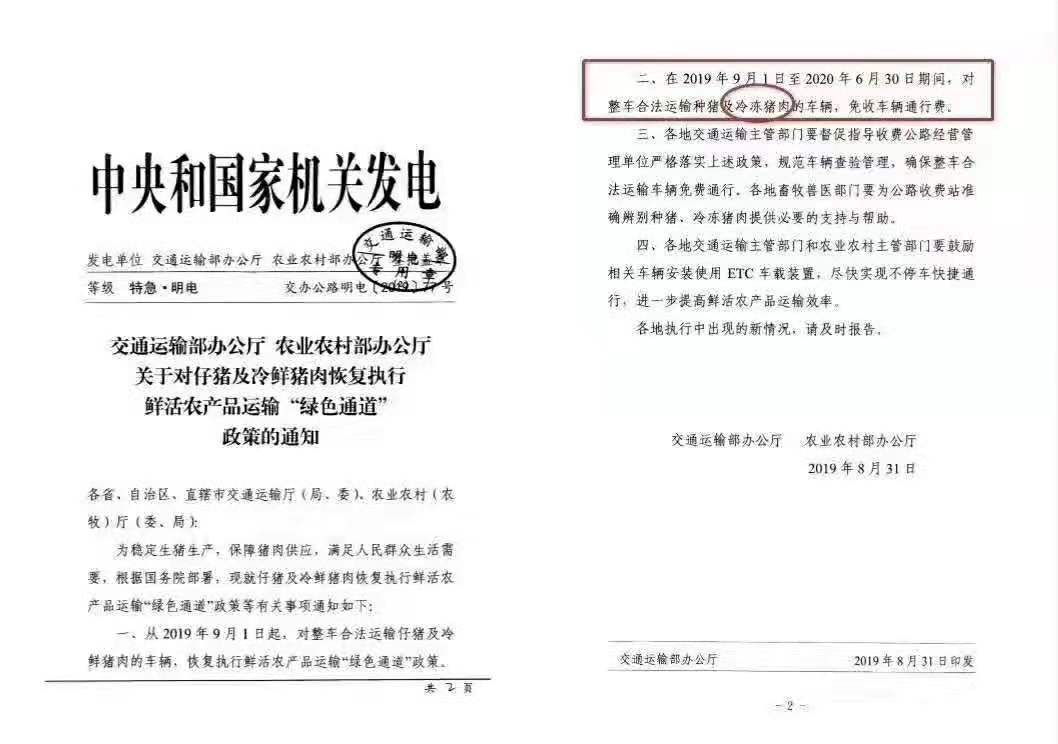 程力專汽冷藏車(chē)重要提示:交通運(yùn)輸部,農(nóng)業(yè)農(nóng)村部通知,2019年9月1日至2020年6月30日采用整車(chē)合法運(yùn)輸種豬及冷凍豬肉的車(chē)輛可以免費(fèi)走綠通了,肉掛冷藏車(chē)的春天來(lái)了,時(shí)間就是金錢(qián)。具體原文如下: